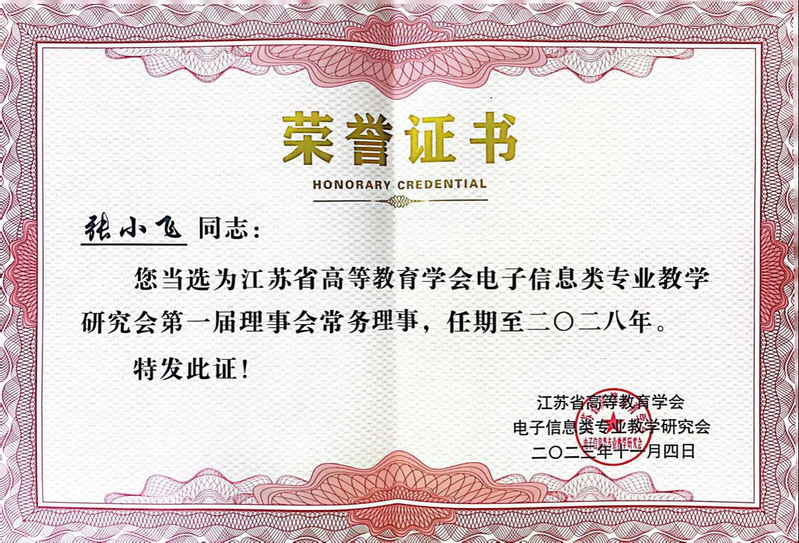 11月4日,江苏省高等教育学会电子信息类专业教学研究会成立大会在南京信息工程大学召开。会上宣读了江苏省高等教育学会电子信息类专业教学研究会成立批复,审议通过了电子信息类专业教学研究会第一届理事名单,成人漫画 张小飞教授当选江苏省高等教育学会电子信息类专业教学研究会第一届理事会常务理事。