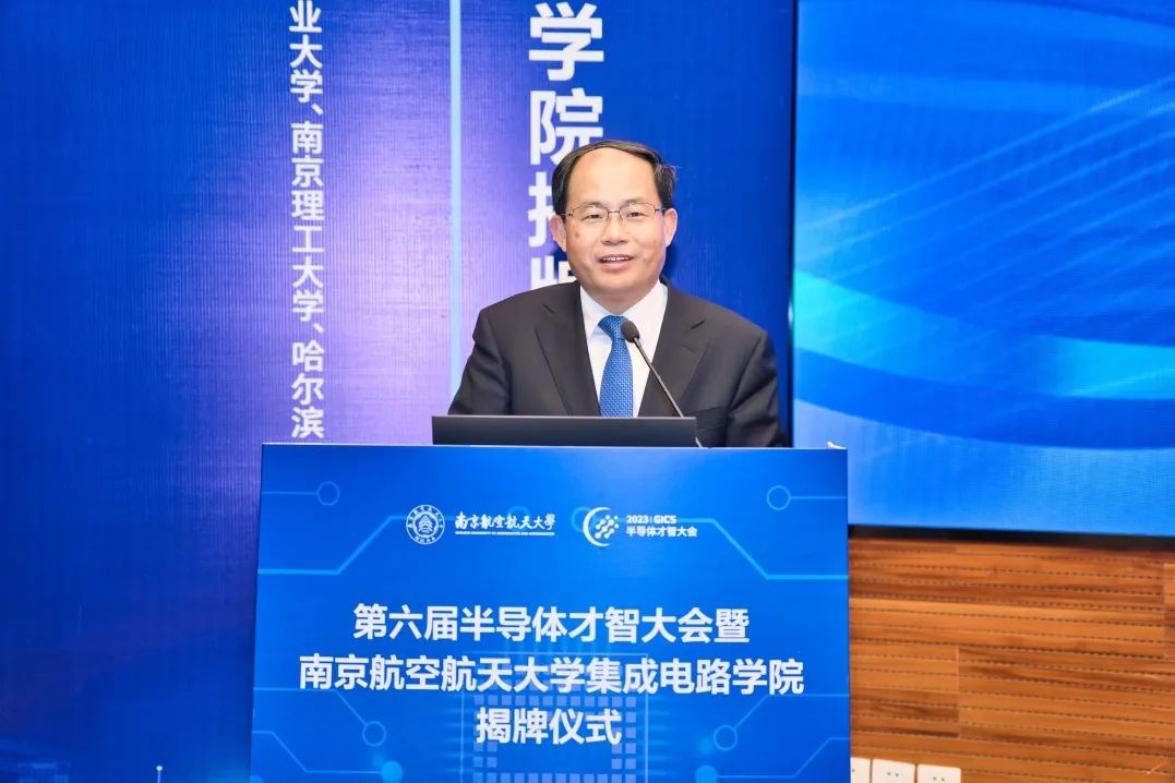 陆志鹏代表中国电子信息产业集团有限公司向南航集成电路学院师生表示祝贺。他强调,集成电路是我国科技发展的重要组成部分,也是我国各行各业实现智能化的基础。他指出,中国电子将进一步深化同南航在集成电路学院建设方面的合作,共同探索更多高效创新的集成电路人才培养模式,共同推动集成电路产业关键核心技术突破。