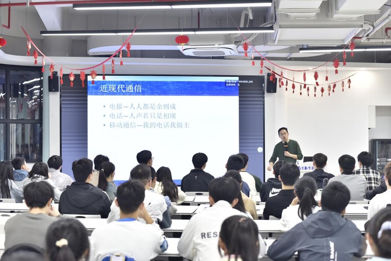 在交流问答环节,同学们踊跃提问积极发言,张小飞针对同学们的提问一一进行耐心以及详细的解答,同时向同学们强调移动通信史发展历史深远且厚重,鼓励同学们重走重学重悟通信史,感悟通信的魅力。