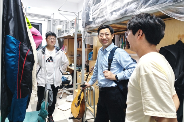 最后,季海群书记还前往东篱苑B5与学生进行了密切交流,询问了解学生们的学习和生活情况,并鼓励他们要树立正确的价值观和人生观,积极面对挑战和困难。季海群书记的亲切关怀和深入交流让学生们深切感受到了学院领导的温暖和关心。