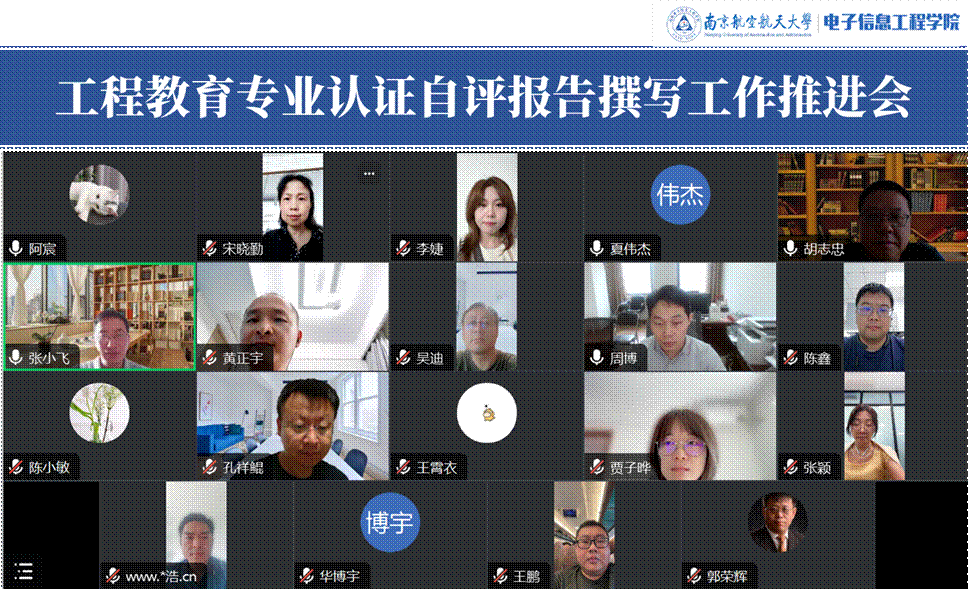 为了推进学院工程教育专业认证自评报告撰写工作、切实提高认证工作质量,7月19日,成人漫画 组织召开工程教育专业认证自评报告撰写工作推进会,副院长张小飞、院长助理夏伟杰,电子科学与技术系主任黄正宇,信息与通信工程系主任吴迪,电子信息科学与技术专业执行负责人胡志忠、信息工程专业执行负责人周博,各专业教师代表陈鑫、刘维浩、时晨光、孔祥鲲、张颖、郭荣辉、宋晓勤、陈小敏、王鹏、李婕、贾子晔、王霄衣、华博宇等参与本次研讨。会议由张小飞主持。