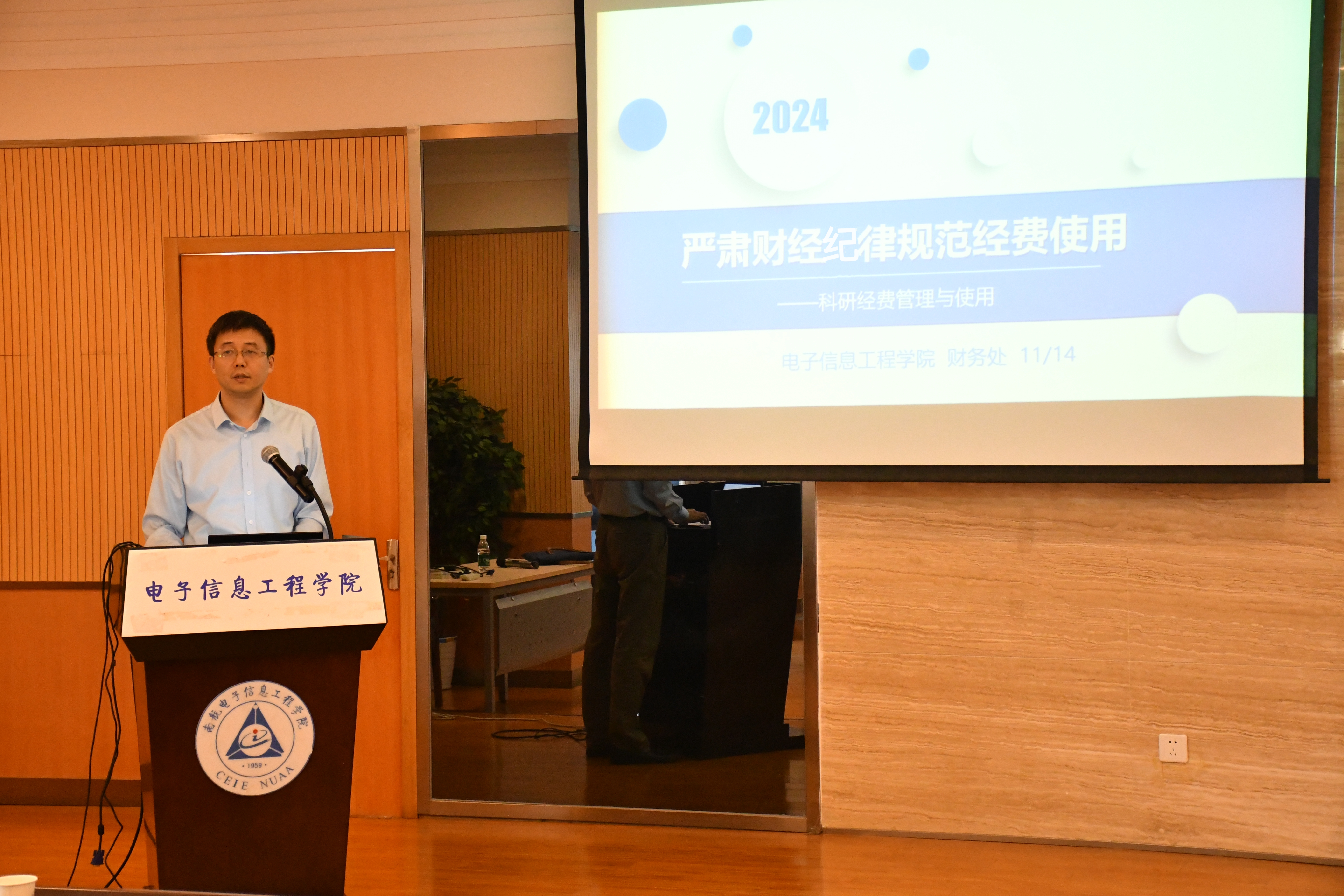 张丕宏为参会老师作《严肃财经纪律,规范经费使用》的辅导报告,报告从学校财务管理体系、国家及学校财经管理制度和规定、财务处目前开展的工作、在报销审核、审计中发现的问题等方面,通过详实的案例,为老师们作了详细的解读,并对规范使用科研经费、诚信科研提出了工作建议。辅导报告增进了与会人员对相关财务纪律的了解,增强了大家的底线意识。