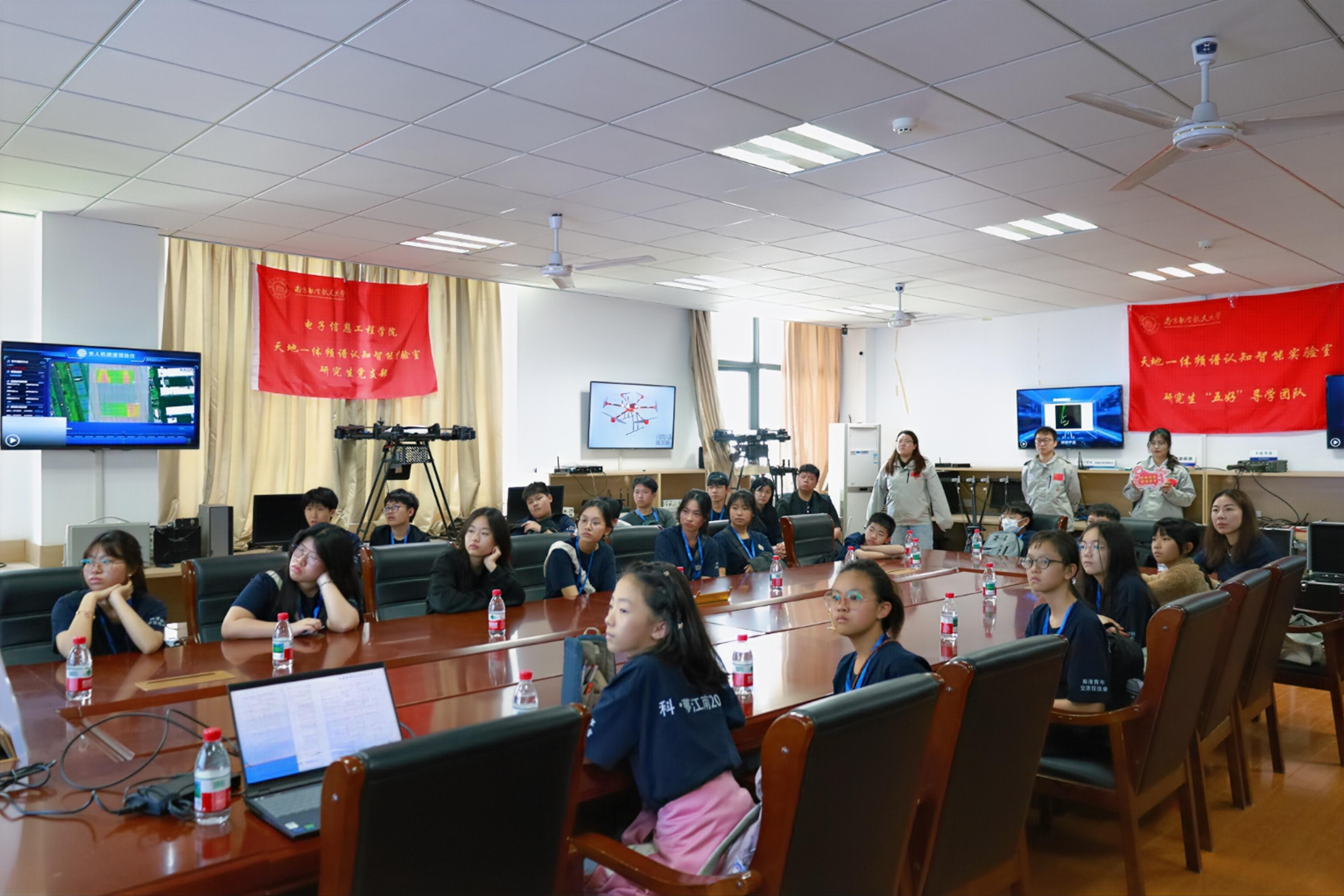 支部书记徐睿带领参观者深入了解实验室的研究方向和技术亮点。他着重阐释了电磁频谱空间认知动态系统的创新应用,让大家对该系统在实际中的应用和发展潜力有了初步认识。唐王昊深入剖析了无人机载辐射源测向定位仪器的前沿技术,将复杂的专业内容以通俗易懂的方式呈现给参观者,为大家打开了一扇通往前沿科技的窗口。