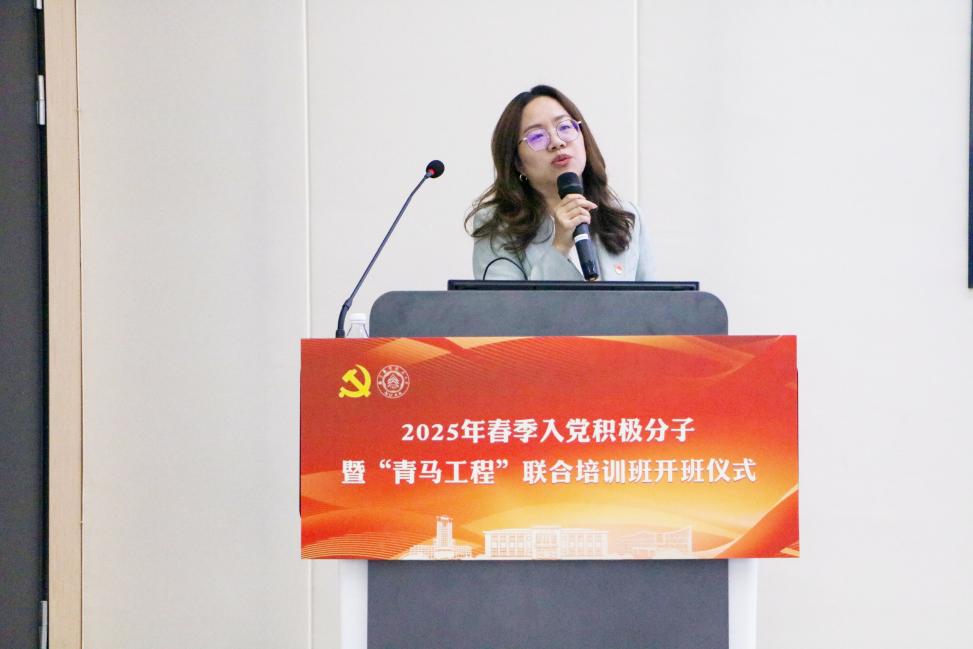 将军路校区开班仪式由周聚主持,她在主持时表示,联合培训班是促进学院和参训学员沟通交流的重要平台,希望全体学员珍惜学习机会,在思想认识上提高站位,增强学习培训的政治自觉;在学风建设上严格要求,高质量完成各项培训任务;在使命践行上主动作为,以实际行动争取早日入党。