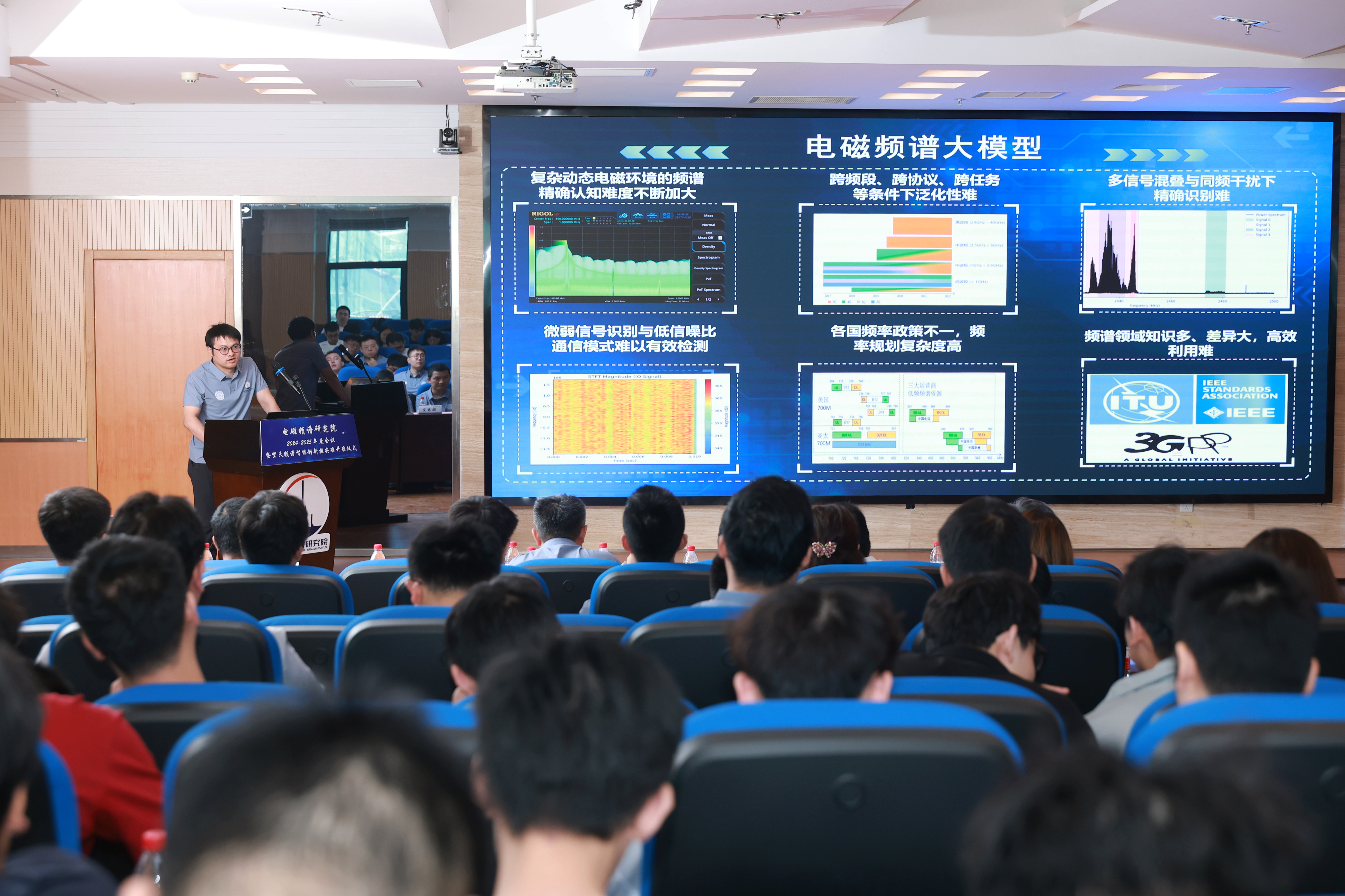 在随后的成果发布环节,认知网络创新中心主任屈毓锛副教授聚焦低空智联网多模可靠通信组网难题,分享了中心在架构设计与核心方法上的系统突破,该成果有效应对了规模化应用中的通信覆盖瓶颈,为低空经济的繁荣提供关键通信保障。认知孪生创新中心主任朱秋明教授分享了立体电磁频谱态势图方向的标志性工作,阐述了中心提出的先进认知方法,有力推动了对电磁空间动态变化的深度认知管理进程。认知定位创新中心主任李建峰教授介绍了在目标探测定位领域构建的创新体系,特别是自主研发的无人机载电磁辐射源测向定位平台,显著提升了在复杂电磁环境与广域范围对高动态目标的精准捕获与定位能力,服务于国家安全与频谱管理重大需求。