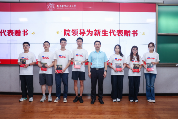 季海群为2025级研究生新生代表赠书《习近平与大学生朋友们》,勉励全体新生树立远大理想、脚踏实地奋斗,将个人成长融入国家发展大局。