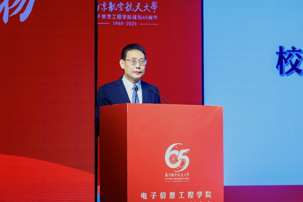 清华大学电子工程系党委书记沈渊作为兄弟院校代表致辞。他对学院65华诞表示热烈祝贺和衷心祝愿,他表示,近年来学院在雷达成像、电磁频谱、卫星通信、微波光子等前沿领域取得了突出成就,期待两学院未来在学科建设、科学研究、人才培养等方面持续开展深度合作,为推动科技进步和社会发展携手做出新的更大贡献。