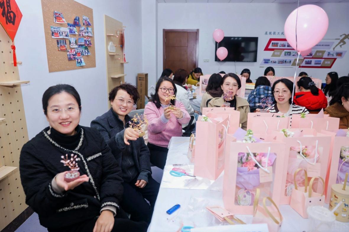创作之余,大家相互交流心得、分享创作乐趣,在指尖的美好邂逅中拉近距离、增进情谊。当亲手制作水晶树呈现在眼前,女教工们的脸上都洋溢着幸福与满足的笑容。这份亲手打造的美好,不仅定格了春日的浪漫,更让大家在忙碌的工作之余,寻得一方放松身心的天地,真正实现了悦己、悦心、悦生活。
