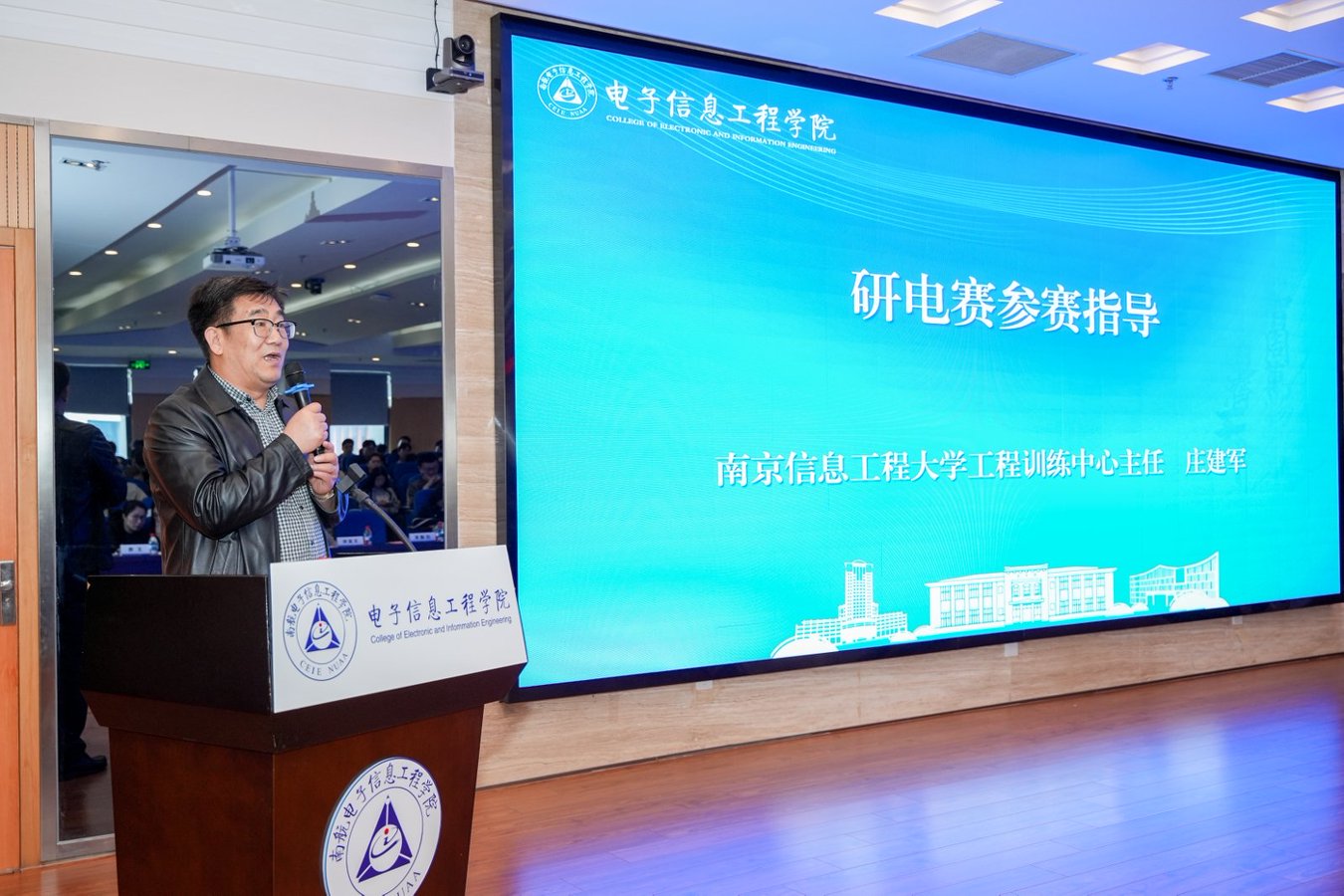 南京信息工程大学训练中心主任庄建军教授围绕本届竞赛,系统解读了赛事宗旨、核心价值与完整参赛流程,深入剖析了技术类开放赛道、应用赛道、专项赛道及商业计划书专项赛的选题策略、评审标准与学术诚信规范,并详细阐述了2026年赛事四大核心革新内容,为我校研究生精准备赛、高效参赛提供了全方位专业指导。